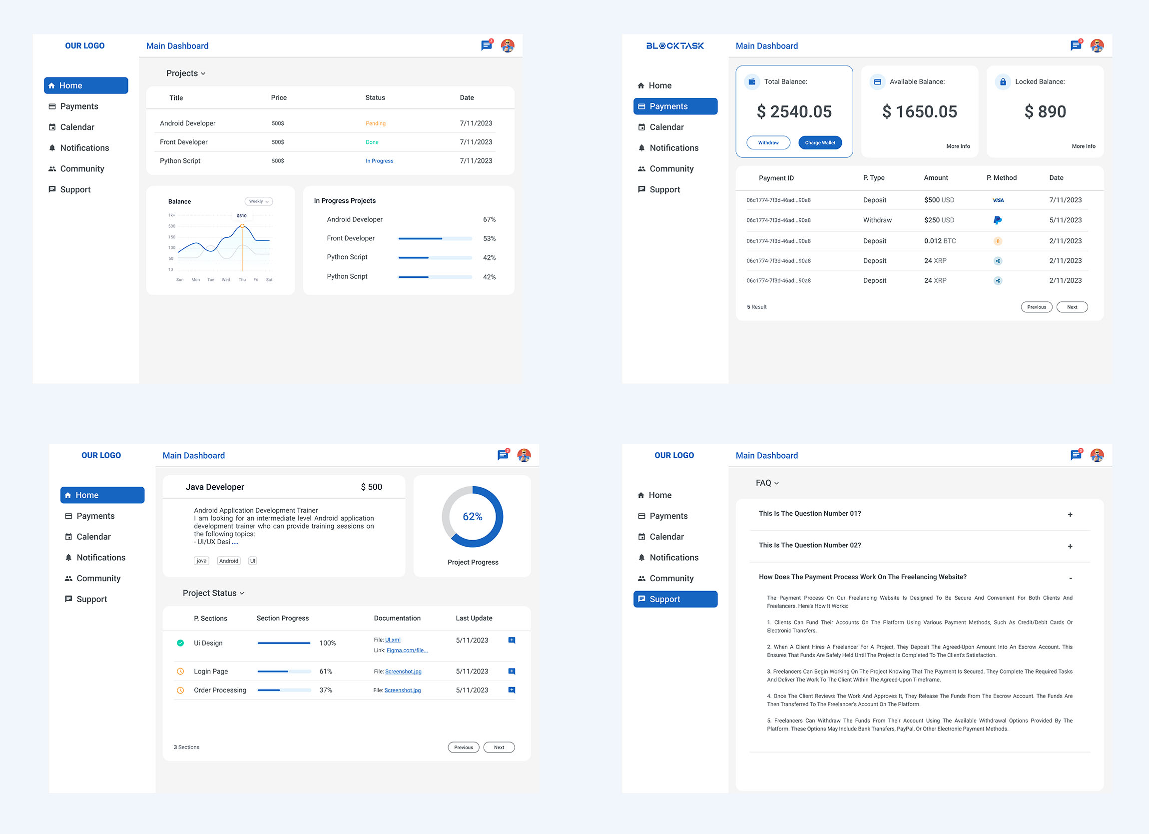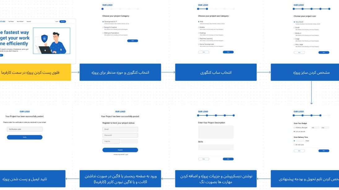- Designed complete user journeys: posting jobs, pricing logic, ask & bid process, project tracking, and milestone payments.