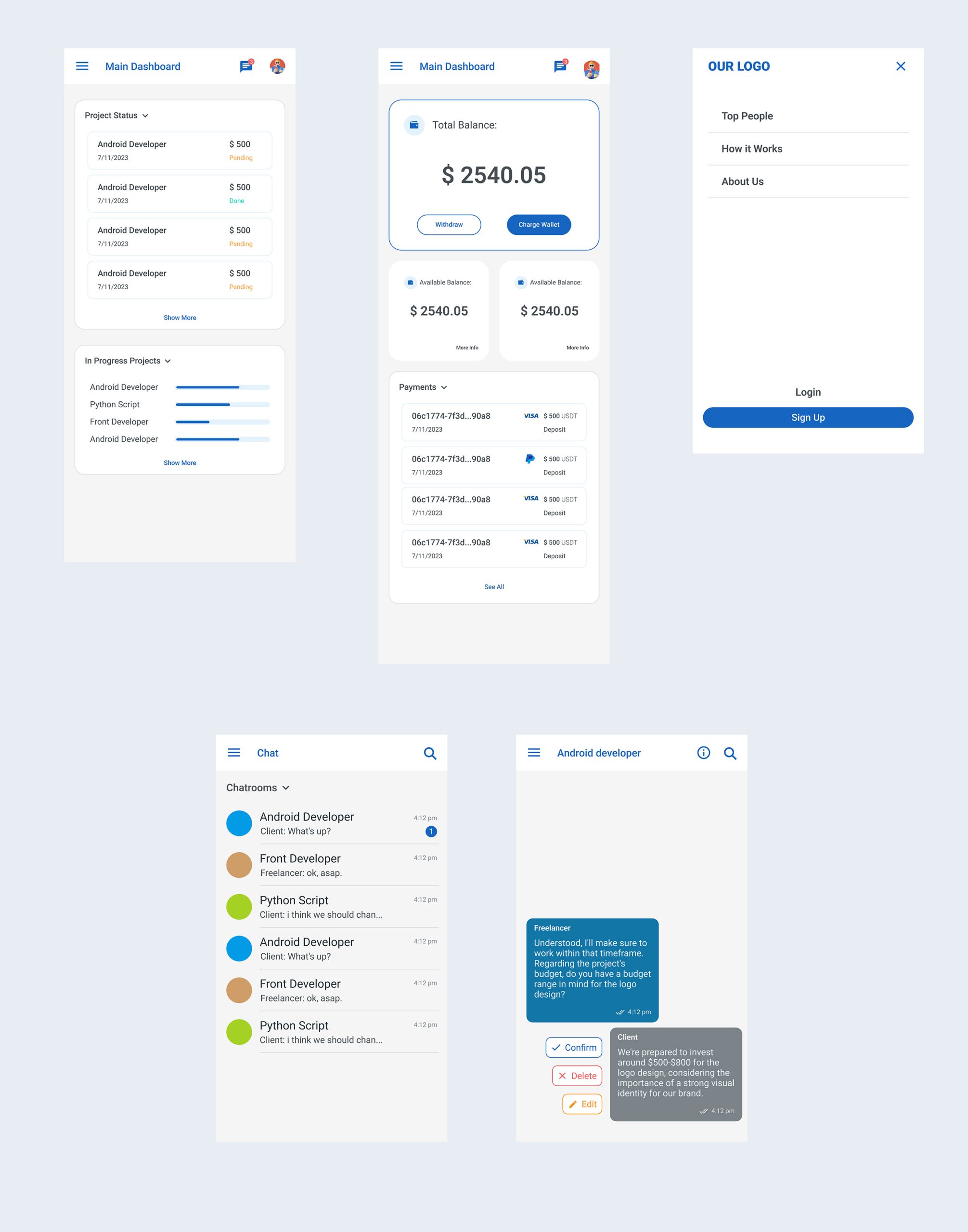 - Translated the initial idea into flows and product architecture for both sides (clients and freelancers).